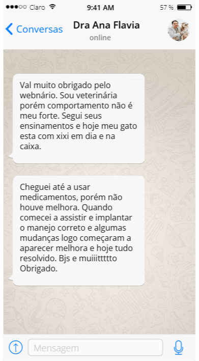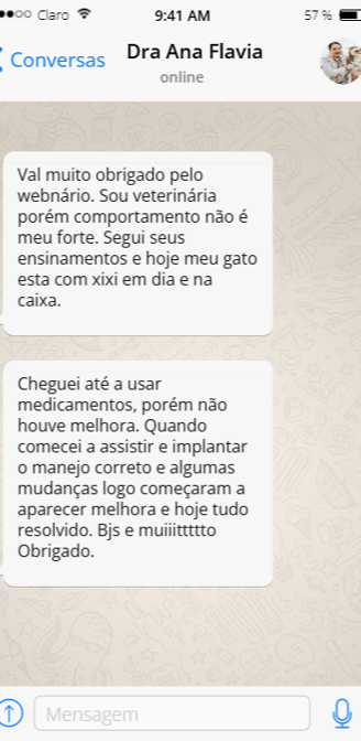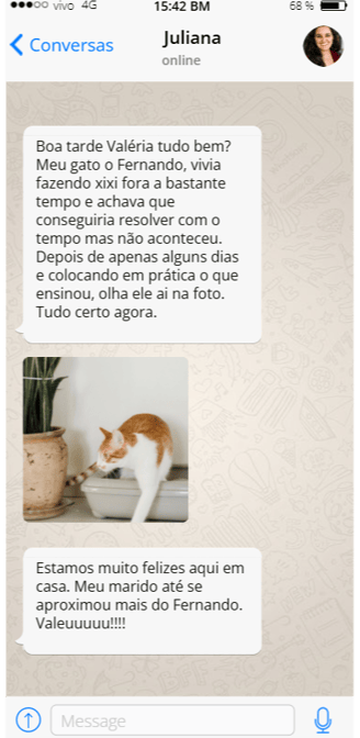 "Transformei a vida de mais de 6000 gatos e suas famílias, fornecendo orientações valiosas para melhorar o bem-estar e o relacionamento entre pets e tutores."
